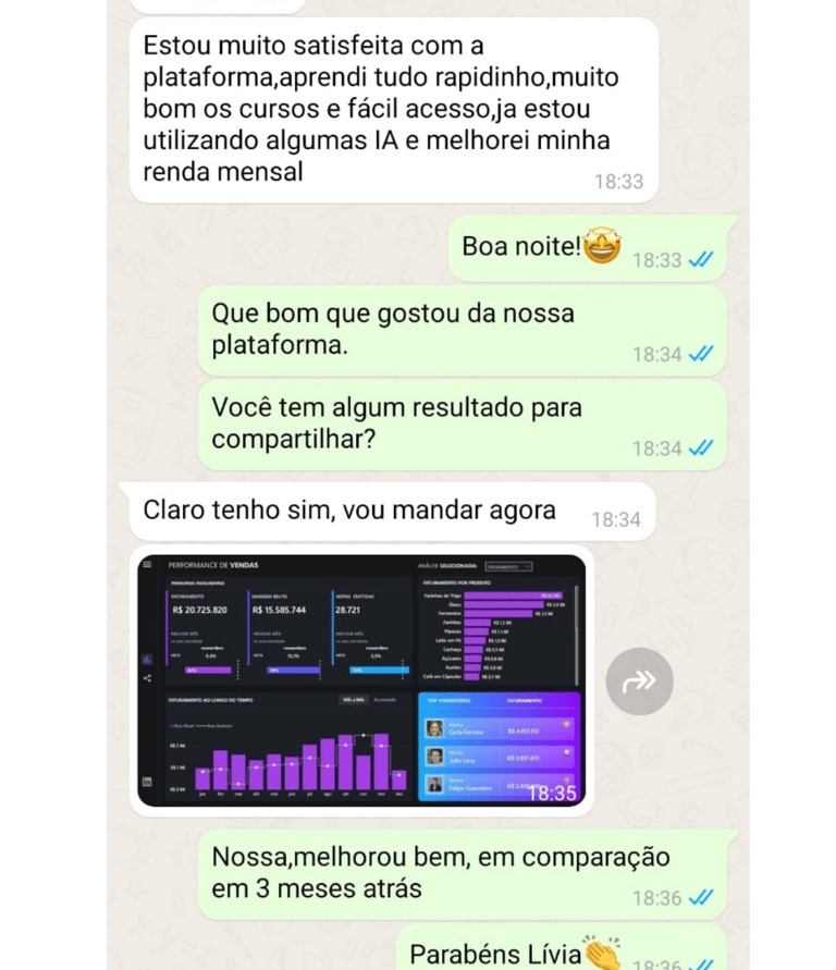 Prints e depoimentos de quem já entrou e está aplicando na prática.